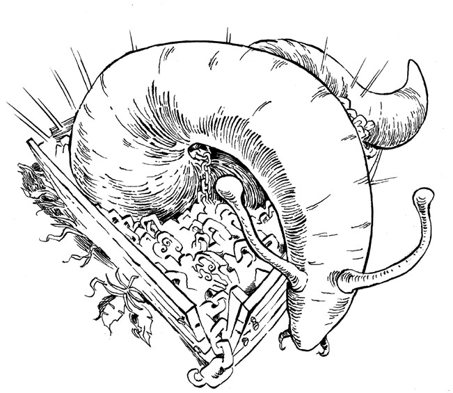 Once upon a time, a young girl living at a farm by the lake of Lagarfljót acquired a gold broach. She placed the broach in a box, underneath a slug, because she had heard that this would increase her gold. When the girl went to check on the gold broach a week later, the slug had grown so much that the box could hardly contain it. Extremely frightened, she grabbed the box and threw it as far out in the lake as she could. Time passed, and the monstrous wyrm’s convulsions began to threaten people living beside the lake. Not knowing what else to do, the farmers called on some Finns to help defeat the wyrm, since Finns were famous for their magical abilities. Upon their arrival, the Finns explored the river and came to the conclusion that the wyrm might prove too powerful, even for them. Nonetheless, they decided to make the attempt and prepared to face it. The battle lasted a long time, with the people waiting on land easily noticing that a mighty struggle was taking place far beneath the surface. Finally the exhausted Finns emerged and declared that they had been unable to overpower the wyrm completely. They had however managed to fasten its head and tail to the lake bottom, where it will stay till the end of all days, without harming anybody. Therefore, no one need worry though they occasionally see the wyrm arching its body above the water.